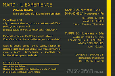 INVITEZ DES AMIS pour découvrir ou redécouvrir la vie de Jésus de Nazareth selon l'évangile de Marc Venez nombreux pour vivre cette expérience !